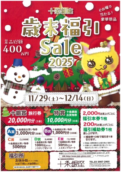 2025年の十条銀座 歳末福引セールは、11/29(土)~12/14(日)開催です。