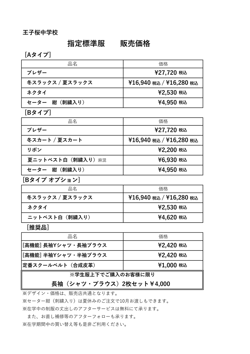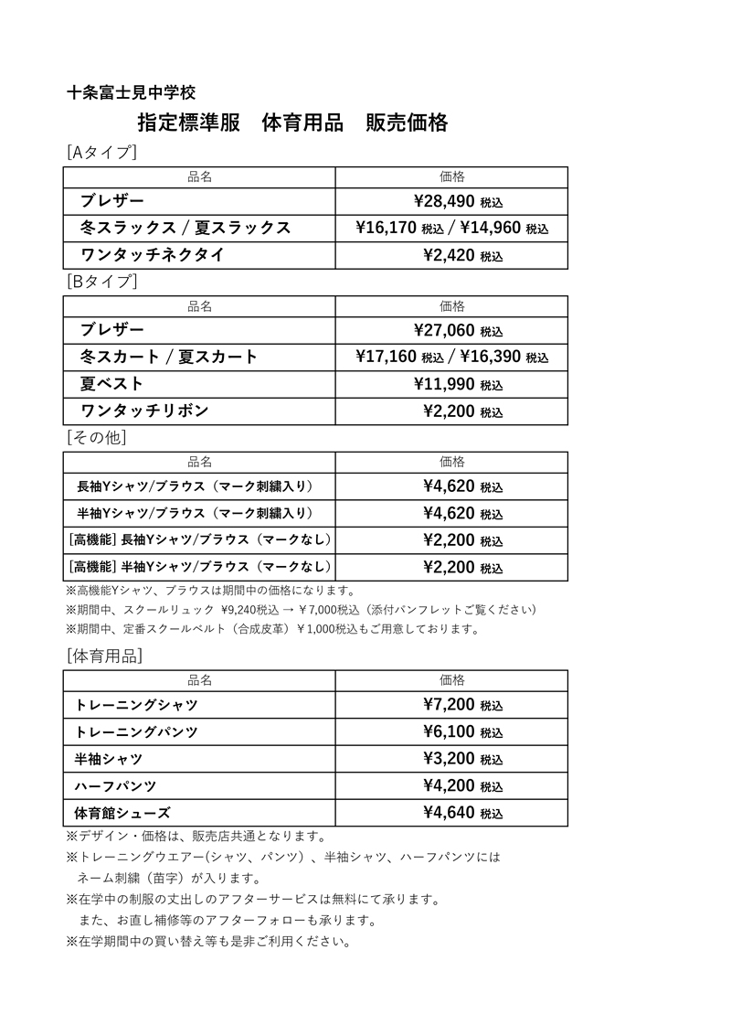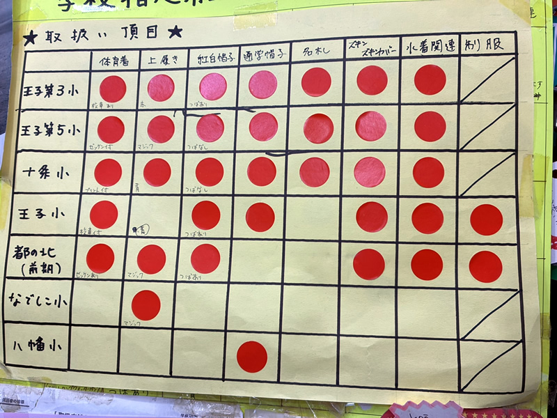 十条近辺の小学校・中学校の指定用品取扱い店(常時、用意しております)。